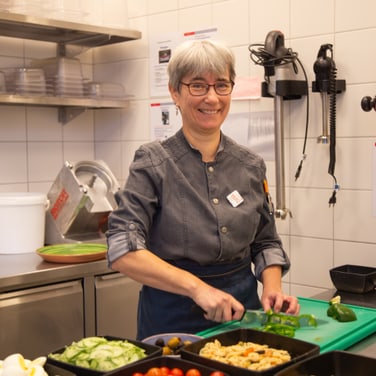 Als Köchin im Migros-Restaurant Stücki bereite ich warme sowie kalte Gerichte zu – von Salaten, über Spezialitäten vom Grill bis hin zum Dessertbuffet. Die Essensausgabe macht mir besonders Spass, da ich mich dort mit unserer Kundschaft austauschen kann.