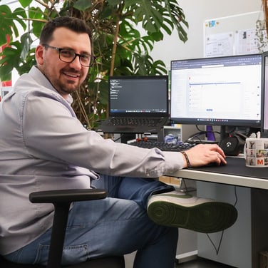 "Seine Leidenschaft zum Beruf machen zu können, ist das Beste, was es gibt", Alban Bunjaki, der als Sicherheitsspezialist gearbeitet hat, bevor er Automatisierungsspezialist wurde, eine Position, die eigens geschaffen wurde, um seine Computerkenntnisse für das Unternehmen zu nutzen.