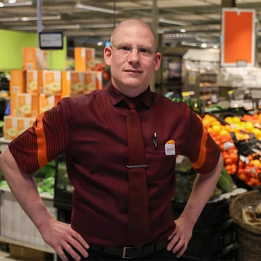 "Zwei Filialen zu leiten erfüllt mich täglich, jeder Tag ist anders und ich habe Spaß an meiner Arbeit", Michaël Oberson, Geschäftsführer der Migros in Boudry und Colombier.