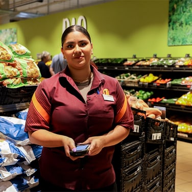 "Ich habe die Schule abgebrochen, um eine Lehre als Detailhandelsfachfrau bei der Migros Neuenburg-Freiburg zu machen, und es hat mir sehr gefallen." Alessandra Hormazabal, Zweite der Obst- und Gemüseabteilung in Marin Centre.