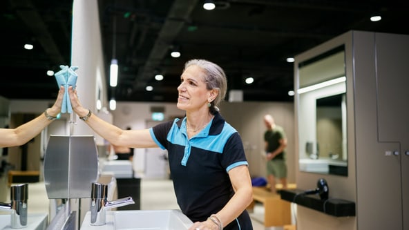Du bist während der Öffnungszeiten für Hygiene und Sauberkeit im Fitnesspark verantwortlich