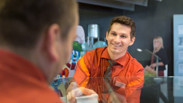 Menüausgabe über den Mittag, Beratung und Bedienung der Gäste