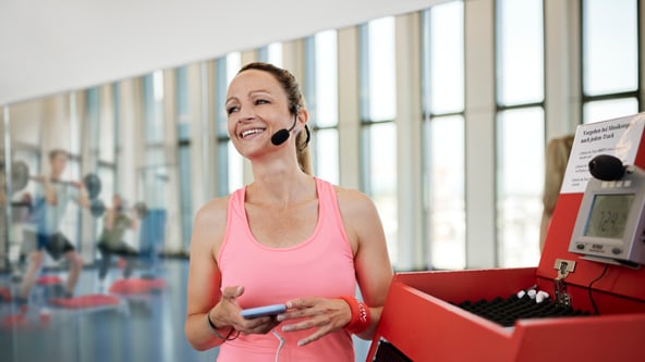Tu diriges les cours de fitness collectifs et transmets tes connaissances avec beaucoup d’enthousiasme
